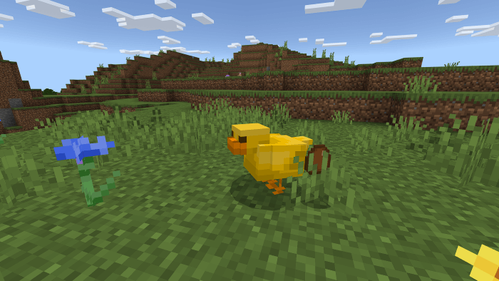 Mob neutre avec un ensemble exclusif de textures et d'animations, ainsi que des sons retravaillés. Les poussins apparaissent dans les prairies et dans les forêts, mais aussi dans les plaines et près des plans d'eau.
