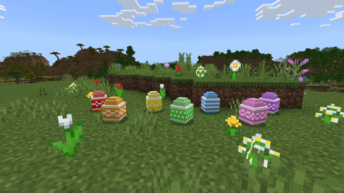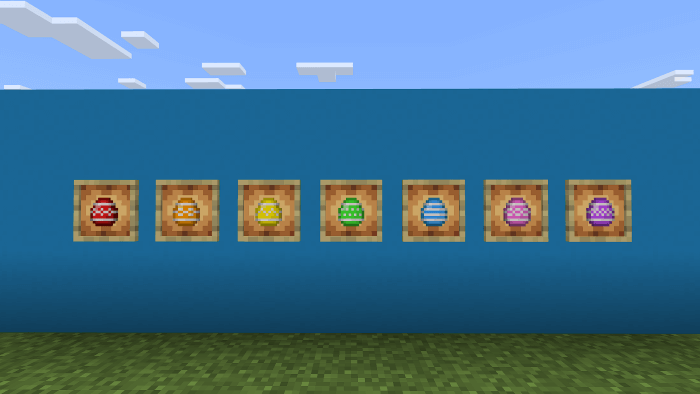 Les nouveaux œufs dans Minecraft sont disponibles en plusieurs couleurs (rouge, orange, jaune, vert, bleu, violet, rose) et sont utiles pour lutter contre une faim soudaine. Avant d'être consommés, les œufs sont automatiquement débarrassés de leur coquille.