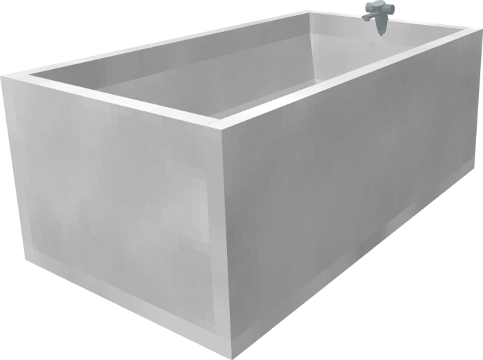 Une baignoire aux finitions soignées, mesurant jusqu'à 1,5 bloc de hauteur et jusqu'à 3 blocs de longueur. Polyvalente, elle est peinte en argenté et s'harmonise avec les sols et les murs de toutes les couleurs.