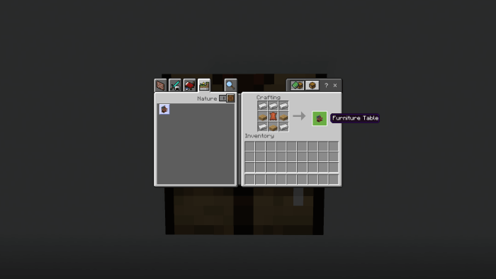Alors que dans « Création », les meubles sont sélectionnés tels quels dans l'inventaire, dans « Survie », il est indispensable de disposer d'un établi (à fabriquer avec du cuir, 5 lingots de fer et 3 demi-blocs de bois) et de toute une série de recettes.